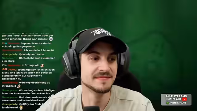 00:02:59Nach dem Start des LiveStreams begrüßen sich die Streamer Maurice Weber und pietsmiet. Sie freuen sich, nach längerer Zeit wieder gemeinsam Crusader Kings zu spielen. Dabei unterhalten sie sich über ihr Alter und das Gefühl, im Beruf jung zu bleiben, während die Lebensphase der 30er Jahre positiv gesehen wird, als Zeit der Selbstständigkeit und Klarheit über die eigenen Lebensziele.