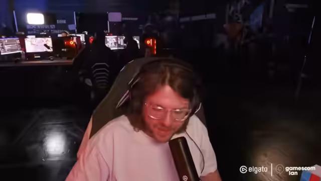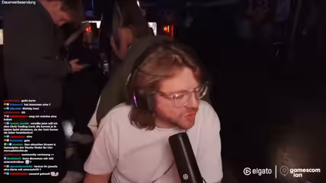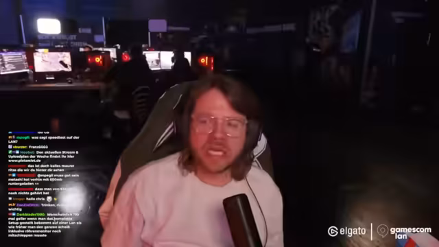 00:09:52Ein besonderer Höhepunkt ist das Erscheinen von Lendo, einer bekannten Figur aus der Community, der Dennis offiziell ein Spiel-Merchandise-Item überreicht. Dies führt zu einem nostalgischen Gespräch über frühere Spiele-Begegnungen. Parallel dazu unterhält sich Dennis mit dem Chat über persönliche Themen, wie sein Corgi Emma, der Physiotherapie benötigt, und Gartenarbeiten, die ihn erwarten. Der Streamer nutzt die Hallenkamera, um dem Publikum einen Einblick in die Größe der Veranstaltung zu geben und die Anordnung der Stände und Banner zu zeigen.