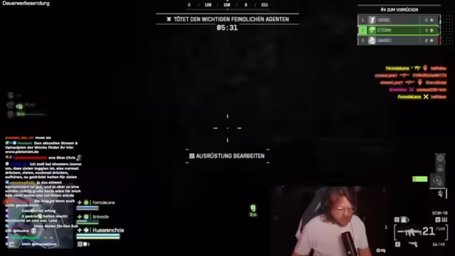 04:20:50Es wird über das Fehlen eines Server-Browsers in Battlefield diskutiert. Die Streamer vermuten, dass dies mit der nicht persistenten Natur der Server zu tun hat und dass Bots jede Runde generiert werden. Der aktuelle Modus ist Squad Deathmatch, was als problematisch empfunden wird, da nur zwei Squads im Spiel sind. Dies führt dazu, dass die Gegner immer zu viert sind. Die Streamer wechseln den Modus zu Team Conquest und landen auf der Map Kontaminiert, die positiv bewertet wird. Sie erwähnen den Wunsch nach einem Modus namens Stummsoldat und testen verschiedene Waffen.
