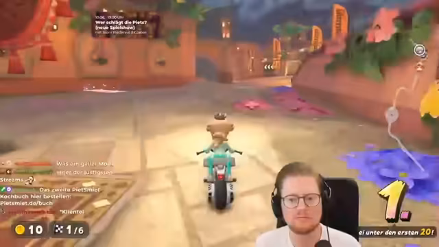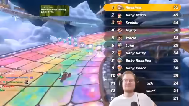 03:45:41Der Stream beginnt mit intensiven Runden in Mario Kart World. Peter und seine Mitspieller, wie Kevin, erleben einen spannenden KO-Modus, der besonders viel Spaß macht. Es kommt zu hitzigen Rennverläufen, bei denen Positionswechseln und Überholmanöver im Mittelpunkt stehen. Gegen Ende der Session gibt es eine große Verabschiedung, bei der alle Streamer synchron links und rechts auf dem Steuerkreuz drücken, was für eine lustige Gruppe sorgt. Es wird angekündigt, dass nächste Woche möglicherweise wieder mit Intian Rennen gefahren werden.