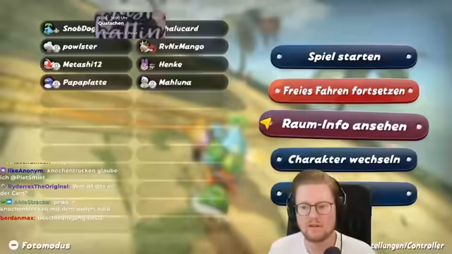 01:55:05Die Vorbereitung für das Mario Kart-Spiel beginnt, als die Teilnehmer sich über die technischen Einstellungen austauschen. Peter erklärt, wie man einer Mario Kart-Welt beitreten kann, und die Teilnehmer diskutieren, ob sie sich via Freundesliste oder Raum-ID verbinden sollen. Es wird darüber gesprochen, dass ein Team mit mehr Spielern einen Vorteil hätte, was zu einer unfairen Situation führen könnte. Metashi, der bereits am Turnier teilnimmt, wird als problematisch eingestuft, und es wird eine Regel eingeführt, dass man nicht im Team mit ihm spielen möchte. Peter testet verschiedene Strecken und erklärt die Unterschiede zwischen klassischen Rennen und den Open-World-Strecken, die mehr Freiheit bieten.