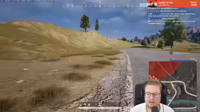 01:31:17Die Runde erreicht einen Höhepunkt mit mehreren direkten Konfrontationen. Ein Spieler nutzt einen gefahrlosen Rückzug, um sich zu heilen, während ein anderer eine riskante Flucht antritt. Es kommt zu mehreren dramatischen Duellen, bei denen Spieler Schüße abgeben, aber oft nicht direkt treffen. Ein Spieler trifft einen Gegner über eine große Distanz sehr präzise, was als sehr gelungen bewertet wird. Ein anderer Spieler hat viel Pech, als sein Fahrzeug ihn vor einem Schuss rettet, er aber kurz darauf von einer anderen Seite angegriffen wird.