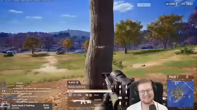 01:17:07Nach einem frühen Tod und einem Reconnect startet der Streamer eine neue Runde PUBG. Währenddessen werden die Einstellungen des Spectator-Modus diskutiert, der es ermöglicht, andere Spieler aus der Ego-Perspektive zu beobachten. Es gibt technische Verwirrung, da sich der Modus von vorherigen Streams zu unterscheiden scheint. Der Streamer ist sich nicht sicher, ob die von ihm genutzte Variante den gewünschten Funktionsumfang bietet, und es kommt zu einem Ausfall der Verbindung, der einen Neustart des Spiels erforderlich macht.
