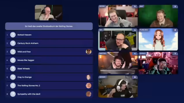 03:01:44Die letzte Runde des Quiz stellte die Teilnehmer vor die Herausforderung, das zweite Studioalbum der Rolling Stones zu benennen. Diese Frage erwies sich als besonders schwierig, da die Teilnehmer wenig bis gar kein Wissen über die Diskografie der Band hatten. Die Diskussionen konzentrierten sich auf die Schreibweise der Albumtitel und mögliche Anspielungen, wie Brammens humorvoller Vorschlag "Moves Like Jagger". Die Teilnehmer versuchten, durch logische Schlussfolgerungen und humorvolle Spekulationen die richtige Antwort zu finden. Letztendlich wurde bekannt gegeben, dass der korrekte Titel "Out of Our Heads" war, was zu einer weiteren Runde der Überraschung und des Gelächters führte, da keiner der Teilnehmer diesen Titel erraten hatte. No Way gewann die gesamte Quiz-Runde mit neun Punkten.