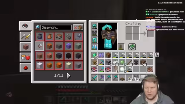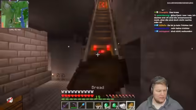 00:40:36Während des Streams treten technische Probleme auf. Ein störendes Geräusch, wahrscheinlich von einem Notenblock, sorgt für Verwirrung und versucht es zu deaktivieren, was zunächst nicht gelingt. Der Fokus verlagert sich auf das Inventar: fehlende Dreizacke und Elytras werden thematisiert. Nach Anfrage bei anderen Spielern, wie Trimax, erhalten sie die benötigten Gegenstände. Ein Verlust des Dreizacks beim Versuch der Flugbewegung führt zu einer hektischen Suche, da er als wichtiger Transportmittel gilt.