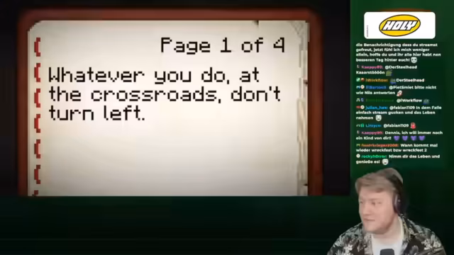 00:07:32Der Streamer leitet das Video mit einer kurzen Anmoderation ein, die auch für die spätere Veröffentlichung auf Pizze mit TV gedacht ist. Er erklärt, dass er im Internet auf ein Video namens 'Searching for a Word That Doesn't Exist' von Wifi's gestoßen ist, das im amerikanischen YouTube als das neue beste Minecraft-Video gehandelt wird. Er erinnert an das zuvor gesehene '1000 Players Simulate Civilization' und freut sich auf die gemeinsame Entdeckung dieses neuen Mysteriums, ohne genaue Kenntnis des Inhalts. Das Video beginnt mit einer mysteriösen Botschaft über eine Kreuzung und die Warnung, nicht links abzubiegen.