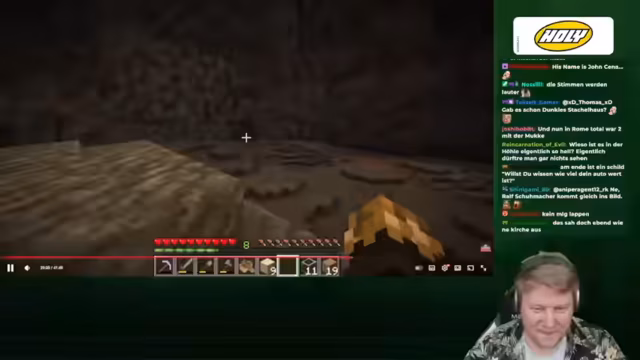 00:12:48Der Streamer spekuliert, ob das Mysterium der Minecraft-Welt, die nicht existiert, gefälscht oder gescriptet ist. Avery findet in der Mine eine Höhle mit unnatürlichem Terrain, wie Moos und Bäume, die nicht natürlich generiert werden. Er bemerkt, dass die Wände der Höhle keine typischen Erze oder Gesteinsarten aufweisen. Die Vegetation wird immer dichter und die Bäume wachsen immer größer, bis Avery das Ende der Höhle erreicht. Die Zuschauer sind fasziniert von der unheimlichen Atmosphäre und der Frage, ob es sich um eine Abenteuer-Horror-Map handelt, die der Vorbesitzer des Computers erstellt hat.