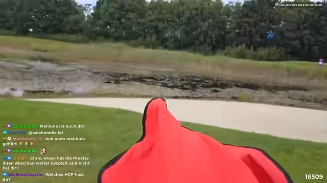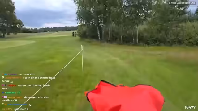 06:42:50Im Stream zeigt begeisterung über einen erfolgreichen Golfschlag, bei dem der Ball sehr weit geflogen ist und er den Boden kaum gespürt hat. Er erwähnt Alessia, die im Flight mit dabei ist und die Congratulations sagt. Er schätzt, dass der Ball fast zwei Fußballfelder weit geflogen ist und ist beeindruckt von der Leistung.