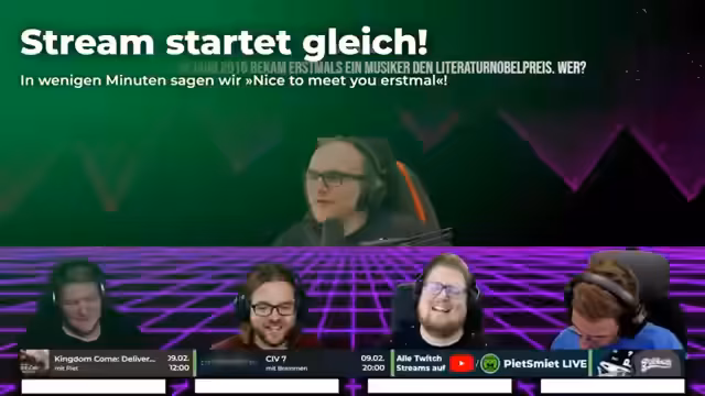 00:00:00Zu Beginn des Streams werden diverse Quizfragen gestellt, die von den Teilnehmern beantwortet werden müssen. Die Fragen reichen von der Übernahme von WhatsApp durch Facebook bis hin zu Prominenten und aktuellen Ereignissen. Es gibt auch eine Frage zu dem Buch 'Tschick' von Wolfgang Herrendorf, bei dem es um eine Spritztour mit einem Lada geht. Des Weiteren wird diskutiert, wann das Video '#Aufbruch' auf dem PietSmiet-Hauptkanal veröffentlicht wurde. Es werden auch Fragen zu technischen Innovationen wie der Einführung von 5G und dem Release von GTA 5 gestellt. Eine weitere Frage bezieht sich auf den Schauspieler Samuel Koch, der bei 'Wetten, dass..?' verunglückte. Abschließend wird die 'Ice Bucket Challenge' im Zusammenhang mit der Nervenkrankheit ALS erwähnt. Die Fragen werden von Tequila161 eingereicht, wofür sich bedankt wird.