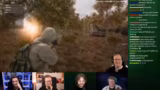 01:39:28Der Stream springt zu einem Clip aus einem Battle-Royale-Spiel. Die Streamer müssen eine strategische Entscheidung treffen, wie sie einen gegnerischen Spieler angreifen können, der sich in einer sicheren Zone befindet. Es folgt ein planmäßiger Versuch, den Spieler zu jagen, der jedoch durch einen unvorhergesehenen Feuertoten zunichtegemacht wird.
