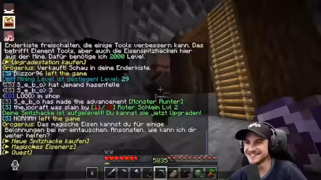 00:52:44Der Dungeon steht kurz bevor die Spieler betreten. Der Streamer spricht mit der Gemeinschaft und stimmt ab, wann es losgeht, um allen die Teilnahme zu ermöglichen. Es wird über den Edgar, den Schweineboss, gesprochen, der besondere Items wie Verzauberungen für die Hacke droppen kann. Der Streamer hat bereits solche Verzauberungen im Shop gefunden und es werden die Vorteile eines Pets diskutiert, das durch das Angeln verbessert werden kann und Boni wie mehr HP und Schaden gibt.