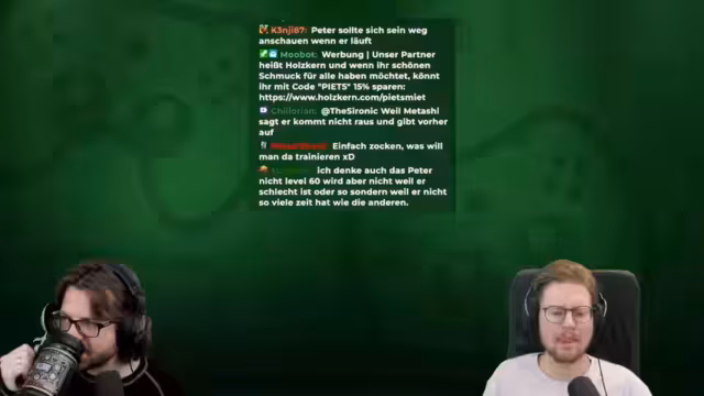 00:13:20Klare Aufteilung der Streaming-Verantwortung: Christian streamt auf dem Hauptkanal, Peter auf PizmiTV, beide nutzen Stream Together für gemeinsame Kommunikation. Diskussion über notwendige Addons, insbesondere das Pflicht-Addon Proximity Voice System für die Gildenkommunikation. Partnerwerbung für Holi Energy-Drink mit Rabattcode 'PeteSweet' wird integriert. Regeln werden wiederholt: Keine Interaktion mit Community-Gilden, Verbot von Speed-Leveling-Guides.