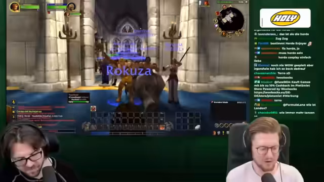 01:56:43Der Stream beginnt mit einer humorvollen Diskussion über die Wahl zwischen Allianz und Horde für das bevorstehende WoW-Hardcore-Event am 27. August. Teilnehmer halten kurze Plädoyers: Die Allianz wird für ihre ästhetischen Städte (Kathedrale, Bahnhof) und anfängerfreundlichen Quests gelobt, während die Horde als "stinkende Kühe" und "schimmlige Orks" verunglimpft wird. Ein Redner betont, dass trotz vorheriger Horde-Dominanz in Events die Allianz diesmal ausgewählt werden sollte, um neue Spieler nicht zu überfordern.