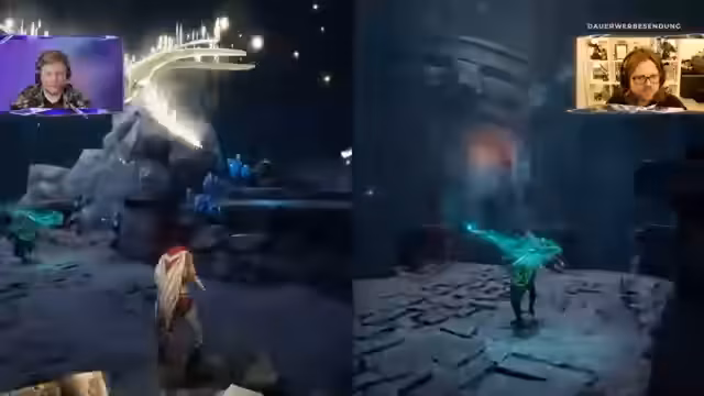 00:23:11Nach einer kurzen Pause, in der Brammen Talente checkt, geht es um Spielmechaniken. Es wird kurz überlegt, ob ein System, bei dem man im Voraus für Getränke bezahlt und am Ende das restliche Geld zurückbekommt, sinnvoll wäre. Es wird die Frage aufgeworfen, ob die Karte am nächsten Tag noch gültig ist. Es wird kurz überlegt, ob es eine Koop mit Final Fantasy geben wird. Es wird überlegt, ob Terminator Resistance gespielt werden soll. Chris und Brammen setzen das Spiel fort und stehen vor neuen Herausforderungen. Sie müssen zusammenarbeiten, um Rätsel zu lösen und Hindernisse zu überwinden. Es gibt einige Schwierigkeiten bei der Koordination und es kommt zu Missverständnissen. Es wird über die Dialoglautstärke im Spiel gesprochen und die Einstellungen werden angepasst. Die beiden erreichen ein Gebiet mit Dracheneiern und müssen diese nutzen, um Mechanismen zu aktivieren. Sie diskutieren über die Logik der Spielwelt und die Größe der Drachen. Die beiden erreichen eine Stelle, an der sie gleichzeitig agieren müssen, um weiterzukommen. Es wird über die Herkunft der Berge spekuliert.