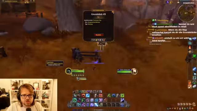 01:10:37Die Streamer erkunden das neue Häuserbau-Feature in World of Warcraft: Midnight. Sie diskutieren, wie man zu anderen Nachbarschaften gelangt, stellen fest, dass der Besuch von Häusern Gold kostet und dass viele Häuser auf privat gestellt sind. Dies verhindert, dass sie die Grundstücke betreten können. Trotzdem können sie über die Freundesliste Häuser besuchen und bestaunen die detaillierte Einrichtung von Dalus Haus, welches viel Zeit investiert erhalten haben muss. Die Größe und der kreative Einsatz von Deko-Items wird positiv hervorgehoben.