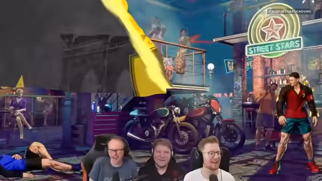 03:17:05Der Stream für Fatal Fury beginnt mit der Erklärung des Ziels: das 'Mäulchen geben' und Spaß haben anstatt einer tiefen Auseinandersetzung mit der komplexen Geschichte. Besonderen Augenmerk wird auf den Charakter Cristiano Ronaldo gelegt, der spielbar ist. Ein erstes Duell gegen Peter endet mit einem Sieg für den Streamer, der daraufhin Bram zu einem Duell herausfordert. Die Spielsteuerung und die Bedeutung der SPG-Leiste für starke Fähigkeiten werden dabei erläutert.