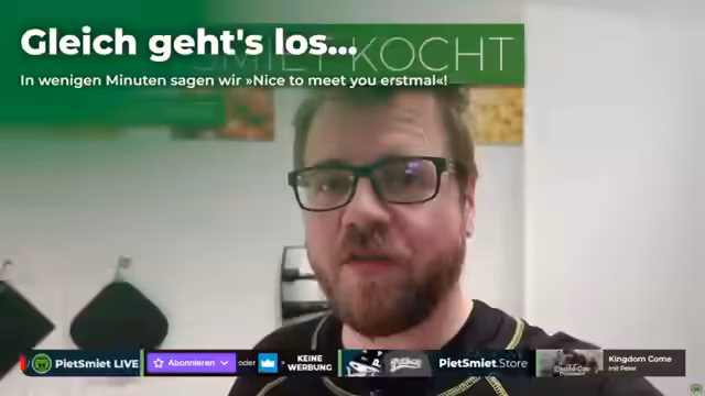 00:00:00Der Stream wird mit einer herzlichen Begrüßung bei Pizza mit Koch eröffnet. Diesmal hat der Streamer die Rezeptidee, nämlich Oma-Rouladen, selbst aus einem Kochbuch ausgewählt. Er beschreibt die Zutaten wie Veränderrouladen, Gewürzgurken, Rindbouillon und Rotwein, zeigt jedoch auch seine anfängliche Unsicherheit und mangelnde Erfahrung mit dem speziellen Rezept und dem notwendigen Küchengerät, dem Holzklopfer.