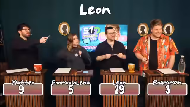 07:22:19Eine Schreibfrage verlangt die Nennung der fünf meistgeschauten Spiele auf Twitch im Jahr 2024, ausgeschlossen ist 'Just Chatting'. Nach anfänglichen Schwierigkeiten und falschen Nennungen wie 'Baldur's Gate 3' und 'Elden Ring' werden die richtigen identifiziert. Eine weitere Schätzfrage bezieht sich auf das meistgeschaute Spiel während der Pandemie im September 2020, wobei 'Among Us' als korrekte Antwort genannt wird, aber die Punkte bereits vergeben sind. Der Streamer mit den meisten Followern auf Twitch, Lando Norris, wird ebenfalls thematisiert.
