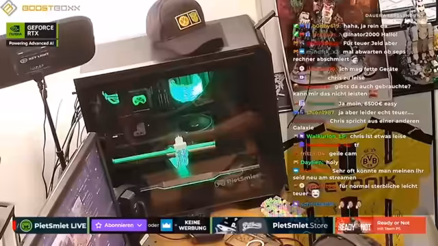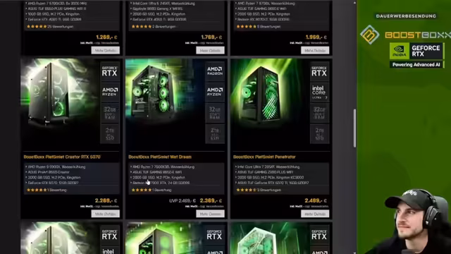 03:07:50Es erfolgt eine umfassende Vorstellung der bei BoostBox erhältlichen PCs, vom Einsteigermodell 'LittleJ' bis zum Spitzenmodell 'Fatshot'. Der Streamer erklärt, dass diese Rechner speziell für die Anforderungen von Streaming, Aufnahmen und Spielen gleichzeitig konzipiert sind und betont die Investition von 6500 Euro als notwendig für die bestmögliche Viewer-Erfahrung. Er geht auf verschiedene Ausstattungsvarianten und deren Bezeichnungen ein und erwähnt die 96 GB RAM und das 1200 Watt Netzteil.