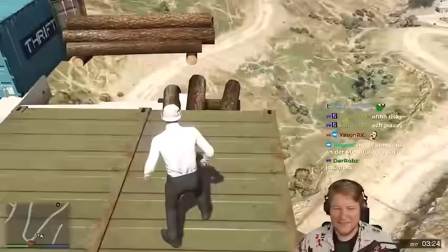 01:55:24In einer privaten Lobby von GTA Online startet eine Death-Run-Challenge. Zwei Teams treten gegeneinander an: Ein Team muss durch einen Parcours zum Ziel rennen, während das andere Team sie von oben aus angreifen. Die Rennen sind von zufälligen Ereignissen und Hindernissen geprägt, die die Fairness und den Verlauf beeinflussen. Teammitglieder sammeln Leben und Rüstung auf der Karte, um ihre Überlebenswahrscheinlichkeit zu erhöhen.