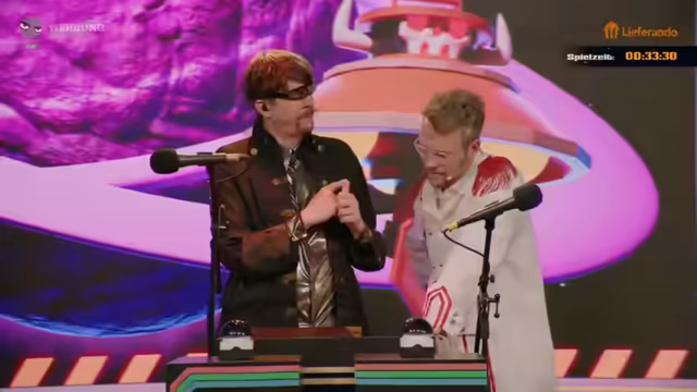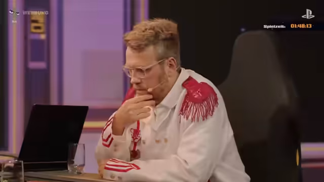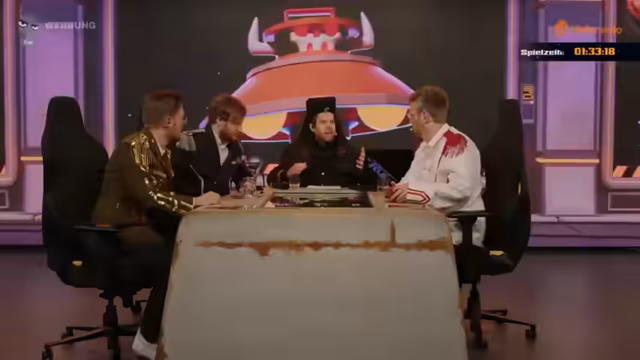 03:15:27Nach der Enthüllung von Judge Greg als Gregor schaltet der Stream zurück nach Hamburg. Nils wird für den gewonnenen Commander Joker durch Konstantin in Berlin beglückwünscht. Der Joker ermöglicht es Nils, sich selbst in die Geschicke des Spiels einzumischen. Es wird noch einmal auf die Rabattaktion hingewiesen, bei der Zuschauer durch Klicken auf Links im Chat die Chance auf bis zu 99% Rabatt auf Produkte von PlayStation, Meta oder Samsung haben. Ein kurzer Clip bewirbt diese Aktion noch einmal, bevor der Stream mit der Vorbereitung auf die nächste Runde fortfährt. Die Spieler äußern ihre Erwartungen an die bevorstehende Challenge, wobei Asti sich über das erneute Schießen statt des erwarteten 'Fuchtelns' beschwert. Chris und Sepp sind zuversichtlich, da Sepp bereits Bogenschießen-Erfahrung hat. Die Stimmung ist ausgelassen, und die Spieler machen sich bereit für die nächste Herausforderung.