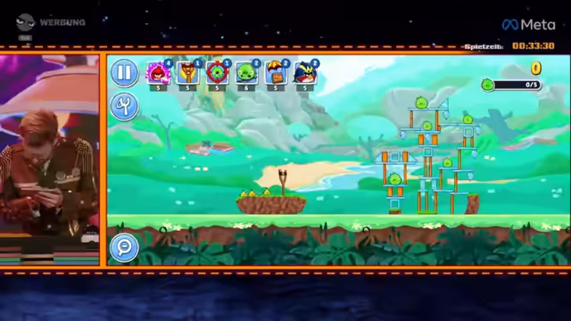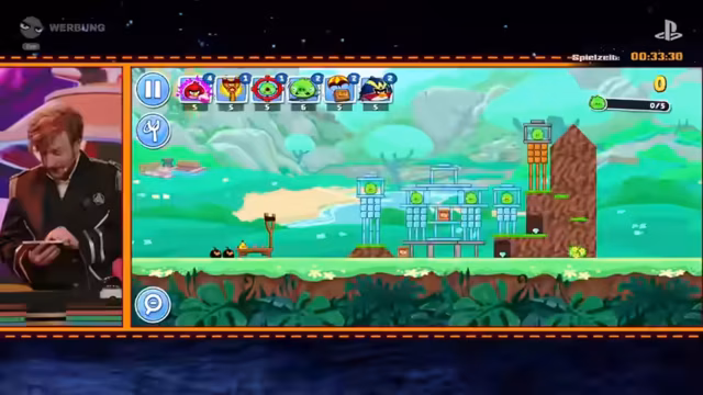 04:34:47Maxim trat als Nächster an, um seine Fähigkeiten in Angry Birds zu beweisen. Er begann mit Level 4 und musste sich erst einmal mit der Steuerung und den verschiedenen Vogeltypen vertraut machen. Trotz seiner Unerfahrenheit zeigte Maxim schnell Fortschritte und erzielte solide Punktzahlen. Die Kommentatoren gaben ihm Tipps zu den speziellen Fähigkeiten der Vögel, wie dem Beschleunigen der gelben Vögel in der Luft. Maxim kämpfte sich durch die Levels und zeigte eine Mischung aus guten und weniger guten Versuchen, wobei er stets bemüht war, die Schweine zu besiegen und Bonus-Torten zu treffen. Seine Runde endete nach sieben Levels, und die Gesamtpunktzahlen mussten von der Regie zusammengezählt werden, um einen Vergleich zu den vorherigen Spielern zu ermöglichen.