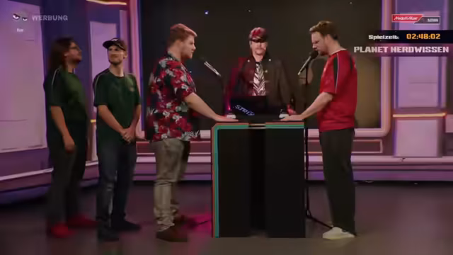 00:12:43Das Event 'Nerd Commander' dient dazu, den alleinigen Anführer des Nerd-Universums zu bestimmen. Die drei Kontrahenten, angeführt von Nils Bohmhoff, Maxim Markov und Peter, attackieren und verteidigen galaktische Planeten, die verschiedene Gaming- und Nerd-Genres repräsentieren. Ziel ist es, am Ende der dreistündigen Spielzeit die Kontrolle über die meisten Planeten zu haben und den Titel des Nerd Commanders zu gewinnen. Jeder Commander hat neun Chips, die seine Krieger repräsentieren und auf den neun Planeten verteilt werden müssen. Die Planeten umfassen Kategorien wie 'Nerdwissen' (Quiz), 'Faust' (Kampf), 'Fuchtel' (VR) und 'Alt und Kantig' (Retro). Bei siegreichen Scharmützeln gewinnt man die Kontrolle über einen Planeten, während unterlegene Einheiten verloren gehen. Jeder Commander verfügt zudem über vier 'Holy Medi-Packs', um verlorene Truppen aus dem Lazarett wiederzubeleben.