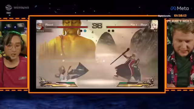 02:25:16Nach dem Sieg von Budi als Freya gegen den Weihnachtsmann, steht das finale Matchup an. Budi und Chris dürfen ihre Charaktere erneut wechseln. Budi entscheidet sich für Buddha, während Chris Odin wählt. Die Spannung steigt, da dies das entscheidende Duell ist, das über den Planeten Müll entscheidet. Das Match beginnt, und es wird schnell klar, dass beide Charaktere Fernkämpfer sind. Buddhas schwebende Bewegung und Odins Wolf-Attacken prägen den Kampf. Es kommt zu Bodenschlägen und Wirblern, wobei die Effektivität der Attacken diskutiert wird. Buddha muss nah ran, um seine Dreh-Attacke einzusetzen, während Odin versucht, mit der Hand und Beine-weg-Attacken zu kontern. Der Kampf ist sehr ausgeglichen, und beide Spieler zeigen starke Leistungen. Chris versucht, Buddha mit dem Wolf zu verprügeln, aber Buddhas Turbo-Twister und Karussell-Attacken scheinen sehr effektiv zu sein. Der Kampf ist intensiv, und die Zeit wird knapp. Budi gewinnt das Match, und damit geht der Planet Müll an Team RBTV.