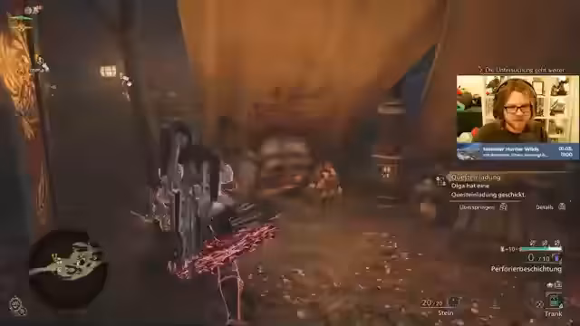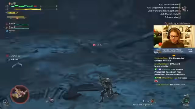 05:37:55Der Streamer findet es schade, dass das Zusammenspiel so umständlich ist, aber alles andere ist nice. Er sammelt Goldöl. Alma ist keine Hilfe. Er guckt nochmal nach der Stellung der Sitzung. Er hat keine Einladung bekommen. Er nimmt seine neue Waffe. Er heilt sich voll und beginnt den Kampf. Er hat Frame-Probleme. Er wechselt zum Schwert. Er rennt weg. Er guckt nach der Gruppe und lädt zur Quest ein. Er kann den trollen. Er haut auf den Weg. Die Morph-Axt hat eine eigene Kombo. Er haut auf den drauf. Die Landschaft sieht geil aus. Da ist noch ein anderer Mob. Er schärft seine Waffe. Er macht eine geile Kombo. Er guckt sich den Revierkampf an. Er ist out of Tränke. Er haut einfach mal ein bisschen drauf rum. Er rennt weg. Sein Gesicht blutet. Er fährt mit der Axt drauf. Er wird auch betroffen. Hinten am Schwanz ist es rot. Er hat ein paar Teile gekriegt. Er lässt schnell Gift hier. Feister schnappt ihn sich. Er wird von der Anime-Attacke getroffen. Er bricht den Kopf. Er hat kein Leben mehr. Er nutzt Wettstein während er reitet. Er springt über den drüber. Er macht den Anime-Angriff. Er spielt die Axt, die auch ein Schwert ist. Er lootet den und findet Goldöl. Er hofft auf einen Boss, an dem sie siebenmal sterben. Die Morphax gefällt ihm. Er soll in Steam unter Eigenschaften den Controller auf Standard stellen. Es gibt immer wieder die kleinen Mobs und die, die sie jetzt gejagt haben.