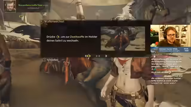 02:23:29Die Spieler diskutieren über verschiedene Aspekte des Spiels, darunter Waffenwechsel, die Nutzung von Fadenkreuz-Befehlen und die Effektivität verschiedener Waffen. Es wird festgestellt, dass die aktuelle Waffe von Luardra stammt. Es wird überlegt, ein Schwert zu schmieden, um schneller Monster zu besiegen und neue Waffen zu erlernen. Die Spieler vergleichen ihre Erfahrungen mit dem Auftreten des zweiten 'Fieb' im Spiel, welches zufällig zu sein scheint. Salo spielt mit einem Langschwert und es wird empfohlen, einen Hammer auszuprobieren. Chris nutzt einen Bogen. Die Gruppe versucht, gemeinsam Quests zu starten, wobei es anfänglich Schwierigkeiten gibt, da die Quest nicht korrekt geteilt wurde. Es wird der Trainingsbereich aufgesucht, um Waffen zu testen und Warnmeldungen zu überprüfen. Die Spieler tauschen sich über die Bedienung des Langschwerts und die Aktivierung von Spezialangriffen aus. Es wird erwähnt, dass das Langschwert mit RT angegriffen wird und dass es wichtig ist, die R2-Kombo für die Waffenverstärkung vollständig auszuführen.