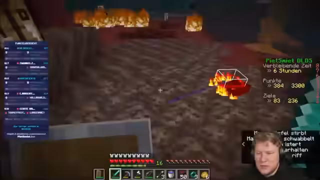 03:46:29Die Teilnehmer begeben sich in den Nether, um verschiedene Aufgaben zu erledigen, darunter das Betreten von Bastionsruinen und das Handeln mit Piglins. Dabei kommt es zu gefährlichen Situationen mit aggressiven zombifizierten Piglins, die sich weit bewegen und die Teilnehmer jagen. Gleichzeitig wird die Suche nach seltenen Materialien wie antiken Schrott und Obsidian fortgesetzt.