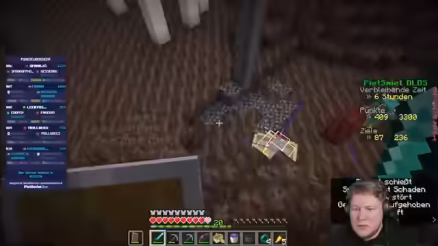 01:28:34Der Stream konzentriert sich auf das Erreichen verschiedener Achievements im Spiel, wie z.B. das Töten von Mobs in der Nähe bestimmter Blöcke oder das Überleben von Stürzen. Dabei werden strategische Herangehensweisen erläutert und erfolgreich umgesetzt. Die Achievements sind oft mit bestimmten Punkten verbunden, die ins Gesamtergebnis einfließen. Spieler zeigen Begeisterung bei der Erreichung schwieriger Ziele und diskutieren alternative Wege zum Erreichen der Ziele.