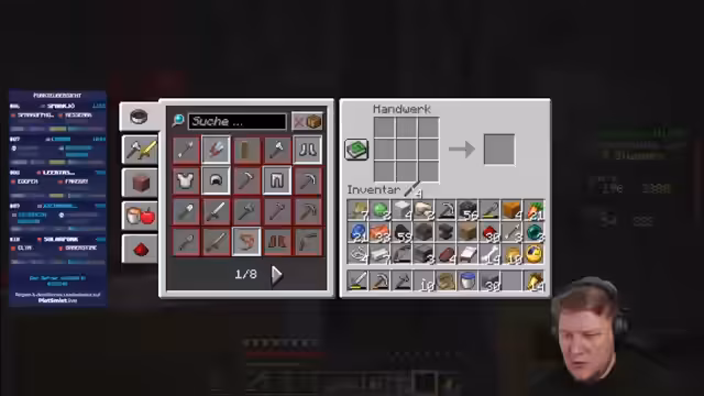 03:34:08Die Teilnehmer beschäftigen sich mit dem Bau eines Werkers, eines mit Redstone betriebenen Blocks, der die automatische Herstellung von Gegenständen ermöglicht. Dazu werden Redstone, ein Spender und eine Werkbank benötigt. Gleichzeitig wird der Nether-Vorbereitung diskutiert, einschließlich des Bedarfs an Goldschuhen, einem Kessel und dem Sammeln von Ressourcen wie Quarz.