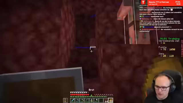00:05:33Die aktuelle Konzentration liegt auf der Beschaffung weiterer Ressourcen. Der Streamer ist im Nether auf der Suche nach Eisen, um Lackspitzhacken herzustellen. Nach anfänglichen Schwierigkeiten und der Verirrung findet er ein Schiffswrack, das Eisen enthält. Anschließend sucht er gezielt nach einem Dorf, um Lackbücher zu farmen, was jedoch zu viel Frustration und Zeitverlust führt.