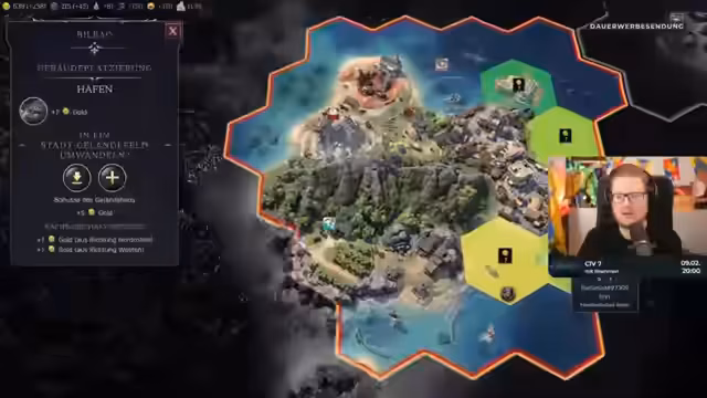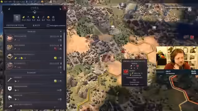 01:51:05Es wird deutlich, dass Peter Schwierigkeiten hat, sein Reich zu stabilisieren und seine Städte zu befrieden, was zu Revolten führt. Sepp hingegen expandiert aggressiv und übernimmt sogar Peters zweitbeste Stadt, was Christian Sorgen bereitet. Es wird diskutiert, ob Peter die Stadt zurückgeben sollte, aber man kommt zu dem Schluss, dass dies Peters Probleme nicht lösen würde. Ein bevorstehender Zeitalterwechsel wird erwähnt, der die Armeen zurückziehen und neue Forschungsmöglichkeiten bringen wird. Sepp erzielt hohe Werte in Gold und Kultur, während Peter mit Unzufriedenheit in seinen Städten zu kämpfen hat. Christian versucht, seine eigene Situation zu verbessern, indem er Sägewerke baut, während Peters Städte revoltieren. Durch den Bau von Stadtmauern gelingt es Christian seine Bevölkerung zufrieden zu stellen. Es wird angedeutet, dass die gewaltsame Unterdrückung von Aufständen eine Option wäre, aber die Spieler befinden sich noch in einer frühen Phase der Zeitrechnung.
