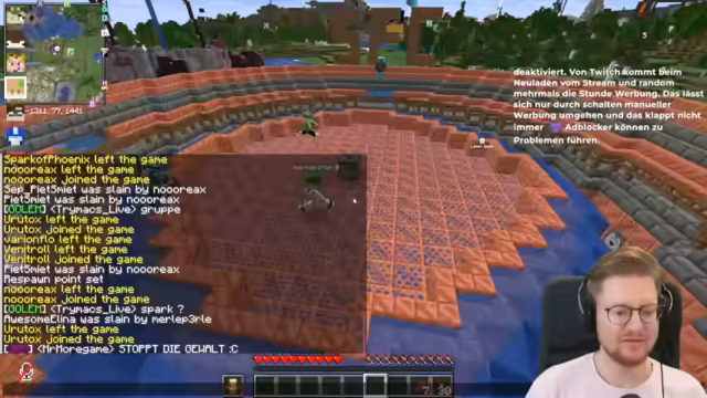 00:40:04Der Stream nahm eine investigative Wendung, als die Spieler versuchten, den Schuldigen für eine Zerstörung im Keller von 'Fuchsel Space' zu finden. Es wurde spekuliert, dass jemand 100 Sniffer platziert hatte, was zu Serverproblemen führte. Die Diskussionen drehten sich um mögliche Täter und die Auswirkungen auf die Serverstabilität. Später wurde über die Effizienz und den Zustand von Villager-Farmen gesprochen. Es stellte sich heraus, dass einige Farmen überbevölkert waren, was zu Performance-Problemen führte. Die Spieler überlegten, wie man die Anzahl der Villager reduzieren könnte, um die Serverstabilität zu gewährleisten, und tauschten sich über die besten Praktiken für solche Farmen aus.