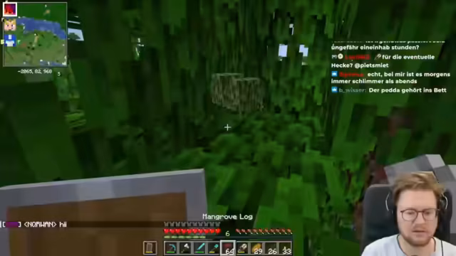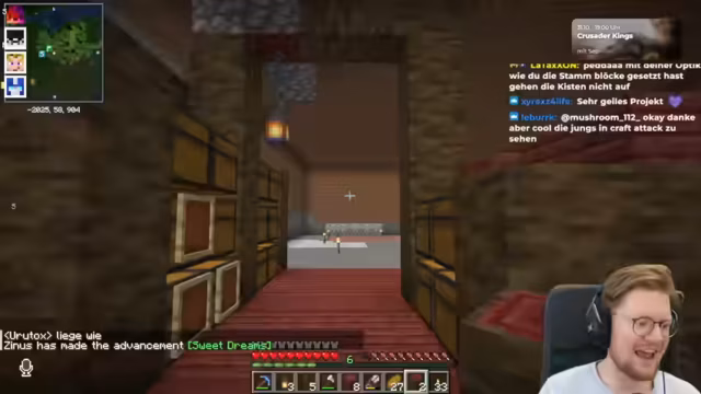 01:38:02Ein Throwback zu alten Zeiten wird vollzogen, als ein Jump'n'Run-Map aus der Vergangenheit entdeckt wird. Ein anderer Streamer hat jedoch erklärt, er werde den Map nur kommentieren, wenn die PietSmiet-Mitglieder wie früher ihre Reaktionen geben. Die aktuellen Bemühungen konzentrieren sich auf den Aufbau einer Truhenbase und die Verbesserung von Werkzeugen durch Verzauberungen, insbesondere Mending, um den Haltbarkeitsverlust zu kompensieren. Währenddessen kämpft der Streamer weiterhin mit Serverabstürzen und unerwarteten Ereignissen wie einem Zombieangriff.