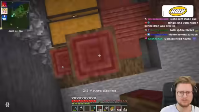 02:51:07Ein Event von Hugo wird erwähnt, bei dem dieser wochenlang Fallen baut und andere Spieler ihn fangen müssen. Als Belohnung gibt es 200 Subs. Nebenbei wird über ein bevorstehendes Minecraft-Update gesprochen, das ein automatisches Kupfersystem mit Golems zur Sortierung von Items einführen soll. Die genaue Ankunftszeit des Updates ist jedoch unsicher und könnte sich verzögern.