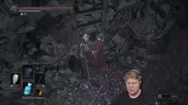 01:21:17Nach dem Sieg über den Old Demon King erkundet der Streamer weiteres Gelände und sammelt Loot. Er stellt fest, dass er für die meisten Ausrüstungsgegenstände keine Verwendung hat, aber eine große Titanitscherbe für sein Schwert benötigt. Er nutzt eine Abkürzung und kommt zu einem Gang, der ihn zu Patches führt. Er diskutiert, ob er Patches töten soll, da dessen Rüstung für eine Quest benötigt wird, und startet eine Abstimmung im Chat, um die Entscheidung zu fällen.