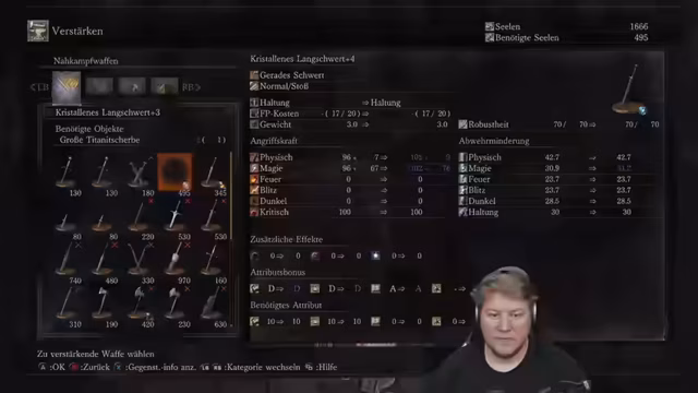 Es wurde eine entspannte Runde Dark Souls 3 absolviert. Das Ziel war die Vorbereitung für einen Soulkeepers-Br4mm3n-Run. Hierbei wurde ein bestimmtes Kristallschwort ausgewählt und Bosskämpfe wie der Wächter der Abgründe oder der Old Demon King zur Probe absolviert. Ein zentraler Punkt war die Klärung des Regelwerks, um festzulegen, welche Taktiken als Cheese verboten sind und welche als legitim gelten.
