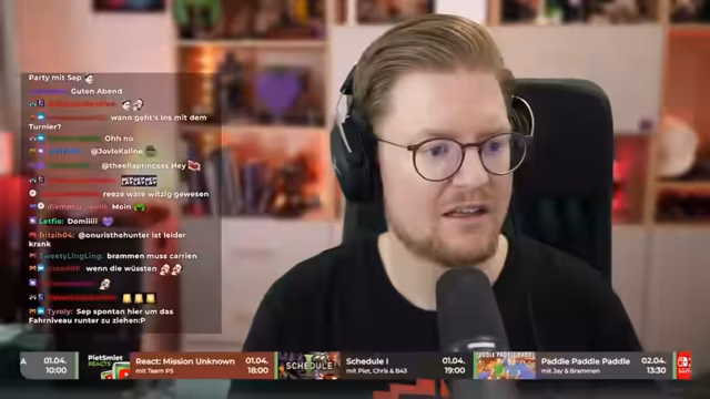 01:39:53Die React-Session zu 'The Race' Staffel 2, Folge 3 wird beendet. Es wird erwähnt, dass möglicherweise noch fünf weitere Folgen folgen werden, aber in geringerer Frequenz. Daniel wird in jedem Fall noch einen Pfad in der Serie bekommen. Direkt im Anschluss soll es mit Mario Kart weitergehen, jedoch wird vorher noch eine kurze Pause eingelegt. Es wird festgestellt, dass die Netzwerkverbindung über Kabel Probleme bereitet, während WLAN einwandfrei funktioniert. Die Frage wird aufgeworfen, wie viele Personen über WLAN spielen und wie oft Peter seine Switch umzieht. Mission H&L wurde eingeschränkt, aber durch den Ausfall von Reese und dem Hinzukommen von Lena besteht wieder Hoffnung. Der Streamer sucht den richtigen Discord-Kanal für das Mario Kart Turnier.