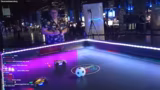 00:39:00Während des Rundgangs stoßen die Streamer auf den Stand der Driveball Arena, eine mobile Arena für Rocket League in Originalgröße. Sie sind von dem Konzept sehr angetan und erhalten eine kurze Präsentation vom Standpersonal. Chris und Dennis testen die Steuerung des Fahrzeugs und versuchen gegeneinander zu spielen, wobei Dennis das Spiel für sich entscheidet. Sie zeigen den Stand, der für Events und Feiern gebucht werden kann, und werben auf ihrem Twitch-Kanal für die Firma. Die Aktion dient als interaktiver und unterhaltsamer Beitrag, der auch die Zuschauer einbezieht.