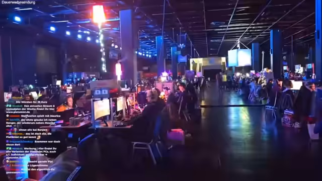 00:00:45Die Streamer starten einen Rundgang durch die Ausstellungshallen, um sich einen Überblick über die Gamescom zu verschaffen. Sie stoßen auf bekannte Gesichter wie Leon, Mechi und Elotrix und unterhalten sich kurz mit ihnen. Sie beobachten, dass Counter Strike das meistgespielte Spiel auf der LAN zu sein scheint. Die Halle selbst wird als sehr bunt und belebt beschrieben, mit vielen Ständen und Aktivitäten. Die Streamer stellen auch fest, dass es einen Partybereich für später gibt, an dem unter anderem ein Twitch-DJ auflegen wird. Der Inhalt der Stände und die Atmosphäre werden als sehr positiv und aufgeregt wahrgenommen.