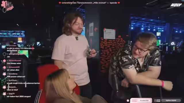 01:58:25Aufgrund von technischen Problemen, die zu schlechter Soundqualität führen, kommt es zu einem verbalen Ausbruch, bei dem die Streamer die Zuschauer auffordern, die Qualität zu akzeptieren. Gleichzeitig wird für das Tierheim in Sizilien gesammelt und ein Spendenziel von 65.000 Euro erwähnt. Die Streamer fragen, ob reiche Zuschauer, statistisch gesehen müsste einer von 8000 Millionären dabei sein, bereit wären zu spenden.