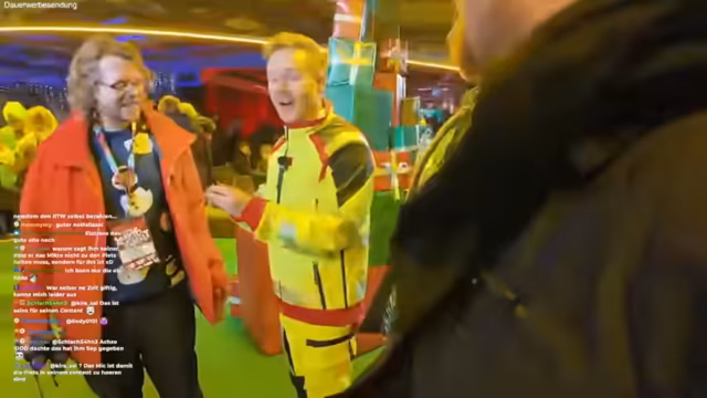02:46:05Es wird auf ein Missverständnis hingewiesen: Bei den Stream Awards war Kramer verkleidet als Henke und begrüßte die Teilnehmer vor dem Stream. Die Anwesenden erkannten die Verkleidung erst nach der Interaktion, obwohl der Chat es sofort bemerkte. Dies führt zu einer humorvollen Diskussion über Wahrnehmung und Erkennung von Personen in Kostümen.