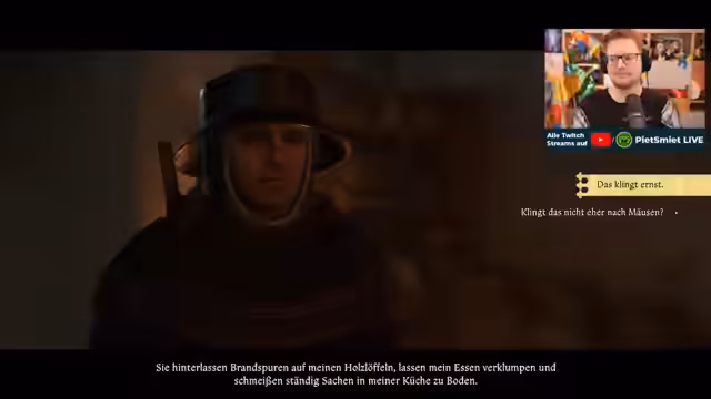 03:40:32Ein Schlüsselmoment entsteht, als der Streamer die von ihm gewonnene „Sinnmarke der Macht“ in einem unerwarteten Wetteinsatz gegen die überhebliche Schankwirtin Betty verliert. Nach einer kurzen, gespielten Trauer über den Verlust der Marke, fasst er den Plan, diese zurückzugewinnen. Er beschließt, direkt gegen sie zu spielen, um die Marke zurückzuerobern. Die daraus resultierende Wette, bei der er anfangs unsicher ist, entwickelt sich zu einem spannenden Duell, das vom Spiel „Kingdom Come“ geprägt ist.