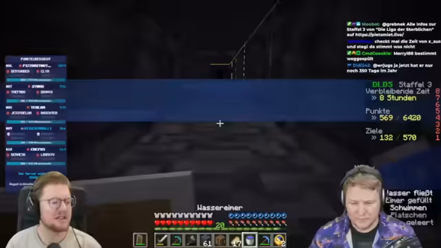 06:35:20Die Diamantsuche geht weiter, wobei der Streamer strategisch vorgeht, indem er versucht, Chunk-Grenzen zu nutzen und einen möglichst direkten Weg zu den Diamanten zu finden. Es wird diskutiert, wie man das Inventar effizienter verwalten kann, zum Beispiel durch das Verarbeiten von Erz direkt zu Barren, um Platz zu sparen. Zudem werden verschiedene strategische Punkte wie die Hotbar-Verwaltung für Essen und das potenzielle Erreichen von 45 Diamanten angesprochen, um die Dia-Rüstung zu vervollständigen.