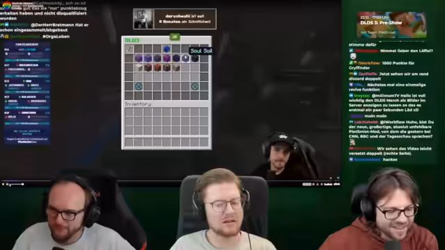 02:22:24Das Team beginnt damit, die gestellten Clips von DLDS 3 zu analysieren. Einige Tode werden als unglücklich und unfair empfunden, wie der Tod durch einen Enderman oder durch explodierende Creeper. Es wird über den No Risk No Fun-Modus gesprochen, bei dem Spieler mit vollem Leben einen Sturz überleben müssen. Der Streamer fragt, ob seine Teamkollegen wiederbelebt werden sollten, da er sich betrogen fühlt.