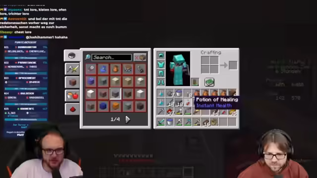 01:34:12Christian hat noch 6 Stunden und 33 Minuten Spielzeit und befindet sich auf Platz 29 der Bestenliste. Er bereitet sich darauf vor, den Stream zu übernehmen und plant, Diamanten zu sammeln und technische Strukturen im Spiel zu bauen, wie Schienen und Loren. Es wird betont, dass die Hilfe der Community bei diesen technischen Aspekten sehr willkommen ist. Während der Vorbereitung treten erneut technische Probleme mit Standbildern und Lags auf, die den Stream beeinträchtigen. Es wird versucht, diese Probleme durch das Wechseln der Stream-Server zu beheben. Christian muss seine Kamera aktivieren und Minecraft starten, um den Stream reibungslos fortzusetzen. Die Diskussion über die Hundegesundheit von Jay, dessen Hund sich übergeben hat, zeigt die persönlichen Herausforderungen, die die Streamer neben dem Spiel meistern müssen. Trotz der Schwierigkeiten sind die Streamer entschlossen, das Gameplay fortzusetzen und die Community zu unterhalten.