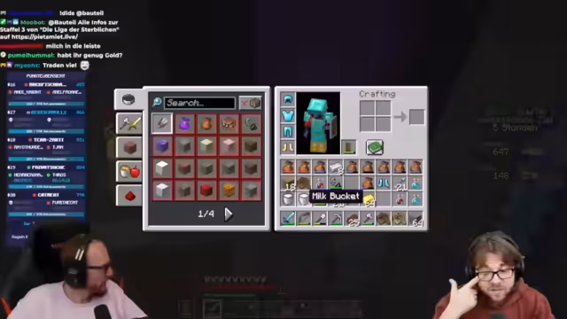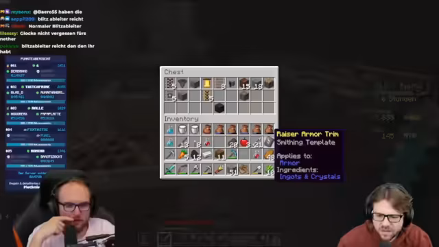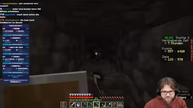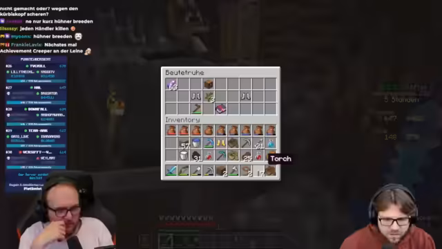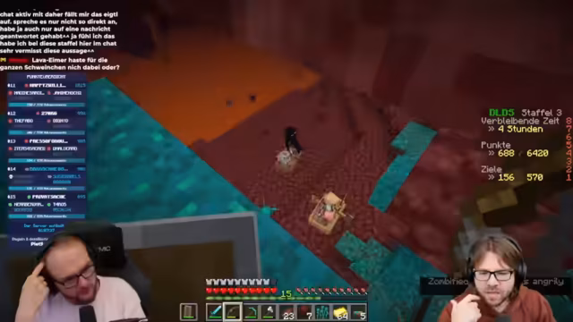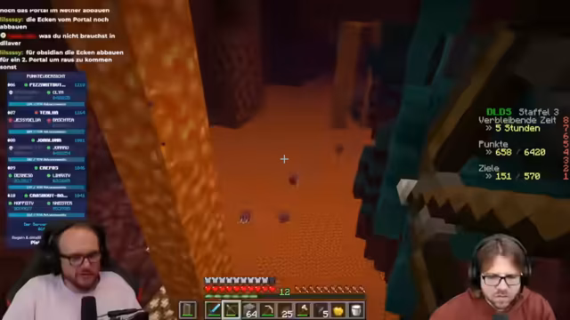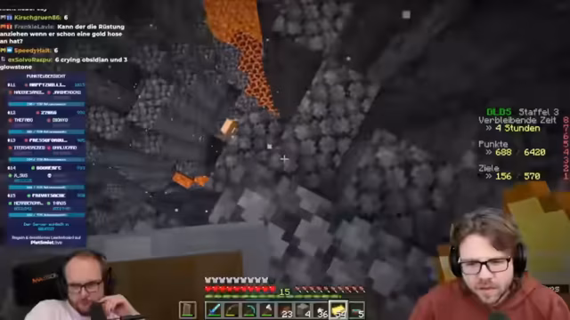 05:01:56Es wird über die erwarteten Punkte von Bram und Peter spekuliert, wobei die Unsicherheit über den Enderman, der noch getriggert sein könnte, betont wird. Dennis und Peter waren bereits im Nether, haben gehandelt und Festungen besucht, was darauf hindeutet, dass sie sich dem Ende nähern. Der nächste Run ist für morgen geplant, und es wird über den Zeitverlust nachgedacht. Der Spieler äußert Bedenken, alleine zu sein, wird aber vom Chat unterstützt. Nach dem Wiedereintritt in das Spiel wird festgestellt, dass die Piglins wieder ruhig sind. Es wird eine Festung in der Nähe des Portals erwähnt. Der Spieler versucht, Enderman zu farmen und zu handeln, um die benötigten Augen zu sammeln. Es wird diskutiert, wie man Piglins am besten in Boote lockt, um sie einzubauen und vor anderen Mobs zu schützen. Der Handel mit Piglins erweist sich als zeitaufwendig, da sie nicht immer die gewünschten Gegenstände geben. Es werden verschiedene Gegenstände gesammelt und überlegt, welche für die weiteren Aufgaben benötigt werden, darunter Crying Obsidian für Seelenanker. Die Suche nach weiteren Piglins gestaltet sich schwierig, und das Inventar füllt sich schnell. Es wird überlegt, wie man am besten vorgeht, um die Aufgaben effizient zu erledigen, und der Chat gibt Ratschläge.